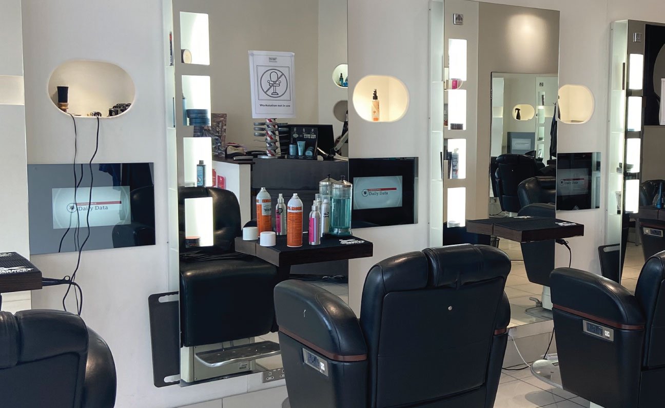 Smart Mirror technology utilises an optical mirror glass that appears as a mirror from one side but can be seen through from the other. When combined with our 24/7 commercial displays the image on the screen is shown through the glass in stunning quality and when the display is turned off, functions as a normal mirror.
