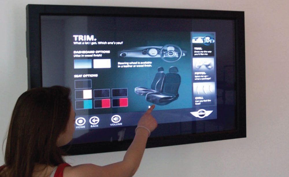 By granting your existing screens interactivity users can engage with the screens at their own pace, creating a more personal buying journey. Users could browse the latest brochure, request car financing options or even build their own dream car without the pressure of a sales assistant standing by.