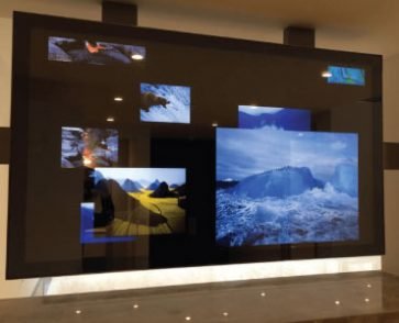 Create the illusion of a larger interior space without compromising on display space with our Mirror Video Walls. With high brightness LED options for bright environments or long distance applications as well as customisable video wall formats, you can create the perfect display wall for your showroom. We can also grant these video walls interactivity using an IR touch frame.