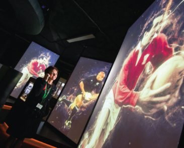 The National Museum of Scotland’s Art, Design and Fashion gallery houses two of our dual image screens measuring over 15 feet high, suspended from the ceiling to be appreciated from every level of the exhibition space. We also provided several smaller Dual Image Acrylic Screens which were suspended from the balconies on each level of the gallery, to ensure visitors did not miss any of the content being showcased.