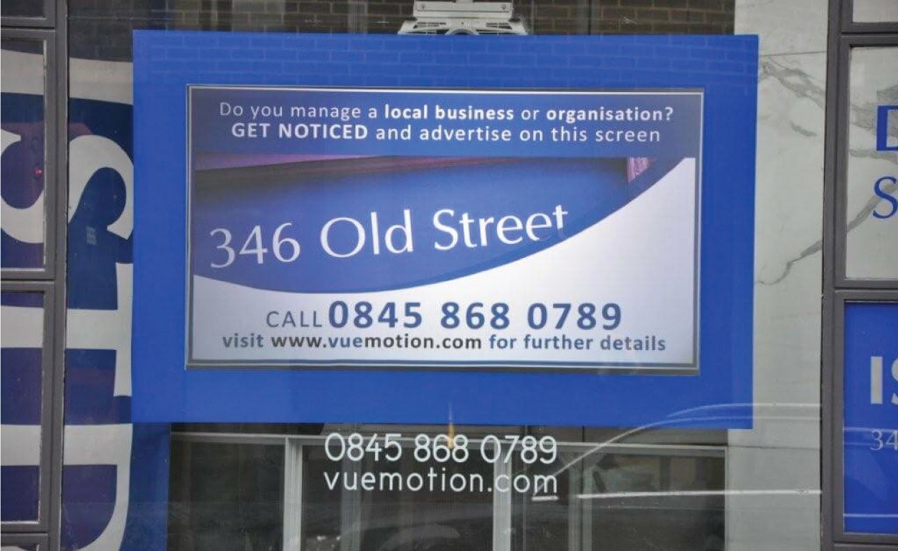 Sunscreen technology boasts the ability to work in direct sunlight, however when used in a window display the glare from the glass it is applied to can cause interference, whereas generally outdoor high brightness screens are manufactured with an anti glare glass fascia. Sunscreen can be made to measure your window space and produced in custom shapes and sizes up to a height of 1370mm, so in cases where a larger screen is necessary an lcd would be better despite its limits on standard sizing. As with any rear projection screen, sunscreen requires an uninterrupted distance behind the screen and has to be projected at from an angle which cannot always be facilitated, whereas an outdoor screen is completely self contained.