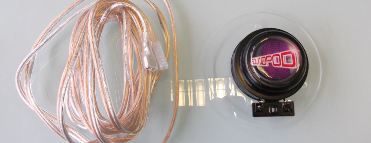 Soundpods are a small and unobtrusive audio transducer or audio exciter, creating the ultimate invisible surface sound source. Soundpod’s use surface sound technology to transform almost any solid resonant surface into an audio speaker. Resonant surfaces include glass, wood and plasterboard, offering the ultimate invisible sound source.