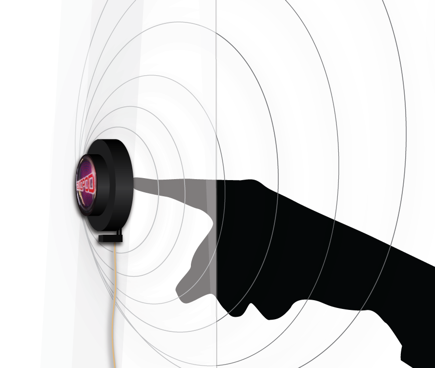 Our small discreet audio transducers work through an energising principle, sending waves of frequency across both sides of the active surface area, creating the perfect, subtly styled, invisible speaker solution. Each Soundpod has a coil at its centre which moves up and down, pushing against the chosen surface to produce non-directional, diffused sound that evenly fills the area around it.