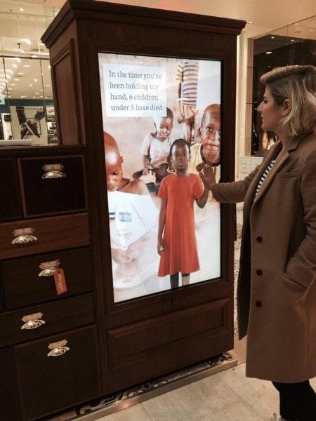 The Story Shop is an immersive retail experience that gives customers an opportunity to learn more about the reality that some children are living today. An interactive mirror allows people to reach out and hold hands with a young girl called Hope, follow her story and then take up her challenge to explore further. – omnifi.co.uk