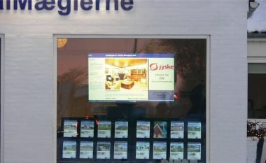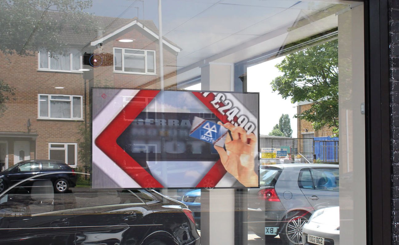 Sunscreen technology boasts the ability to work in direct sunlight, however when used in a window display the glare from the glass it is applied to can cause interference, whereas generally outdoor high brightness screens are manufactured with an anti glare glass fascia. Sunscreen can be made to measure your window space and produced in custom shapes and sizes up to a height of 1370mm, so in cases where a larger screen is necessary an lcd would be better despite its limits on standard sizing. As with any rear projection screen, sunscreen requires an uninterrupted distance behind the screen and has to be projected at from an angle which cannot always be facilitated, whereas an outdoor screen is completely self contained.
