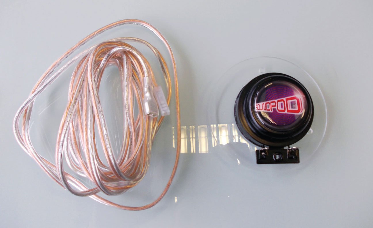 Soundpods are a small and unobtrusive audio transducer or audio exciter, creating the ultimate invisible surface sound source. Soundpod’s use surface sound technology to transform almost any solid resonant surface into an audio speaker. Resonant surfaces include glass, wood and plasterboard, offering the ultimate invisible sound source.
